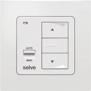 commeo Wall Send1-kanals väggmonterad fjärrkontroll för individuell eller gruppstyrning med AUTO/MAN omkopplare. Vägghållare och AAA batterier medföljer. |